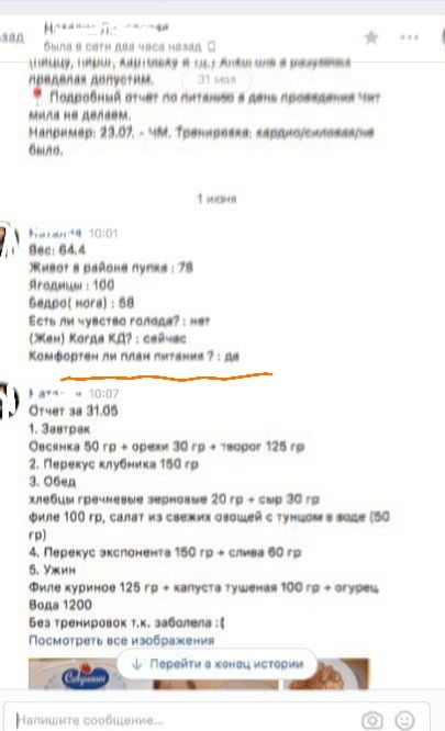 Очень советую принять участие в этой программе. Я прошла первый этап и очень довольна результатом. Вес- минус 3,4кг. Но по объемам просто супер : талия- минус 6 см, бедра- минус 4,5см. Соблюдая план питания вы будете все время есть!! Никакого голодания. Очень много информации вы получите, индивидуальный план и постоянную поддержку Никиты. Учитывая что я всегда была сладкоежкой, мне очень легко было соблюдать план питания. Видимо из за правильного соотношения БЖУ сладкого совсем не хотелось.