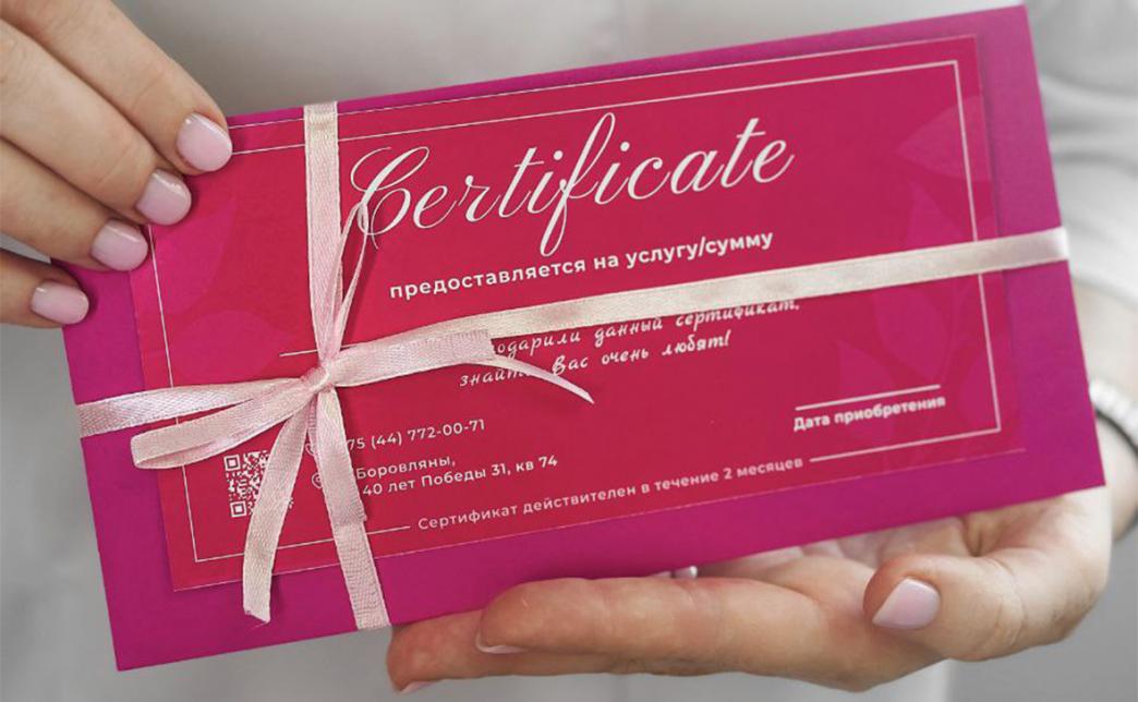 - Возможность оформления подарочного сертификата к любому празднику: высокое качество, упакован в отдельный красочный конверт. А также есть возможность отправки электронного сертификата в мессенджер