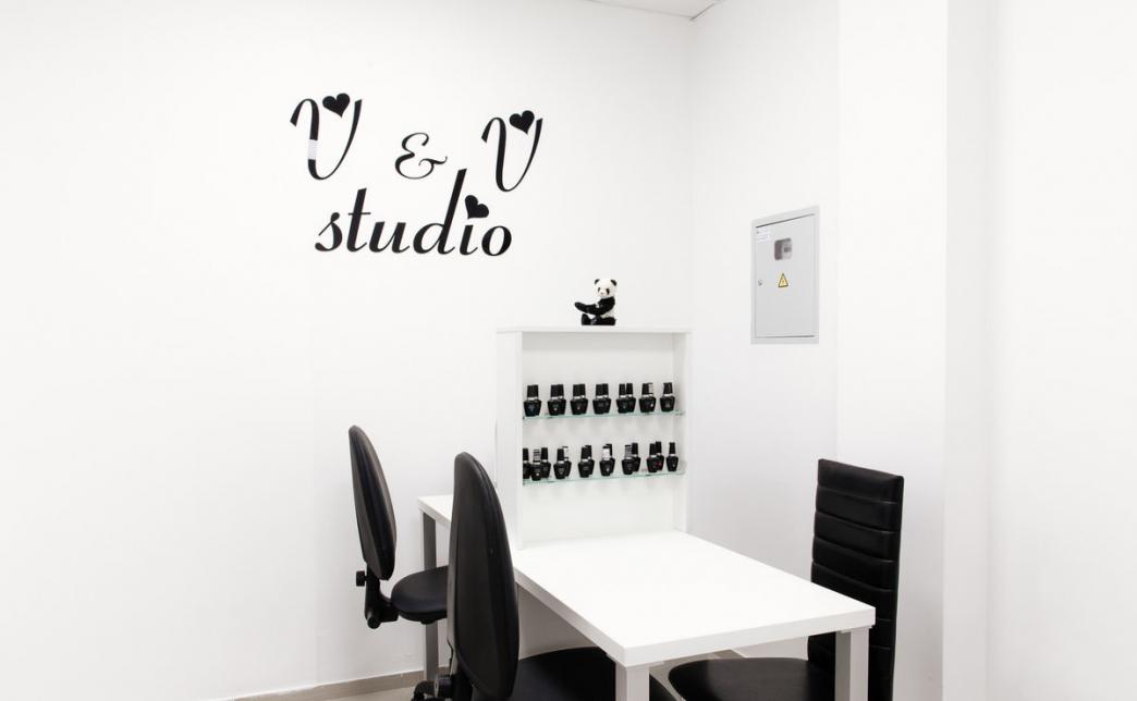Пространство салона поделено на зоны: одна часть студии отведена под работу над ресницами и бровями, другая - для маникюра и педикюра. Опытные мастера-преподаватели занимаются всеми видами наращивания ресниц, оформлением бровей, с окрашиванием краской или натуральной хной, а также всеми видами работ, связанными с ногтями на руках и ногах. Интерьер салона красоты был создан в черно-белой цветовой гамме, с элементами серебра. Современное оформление бьюти-заведения дополнено удобными кушетками для наращивания ресниц, а также комфортным креслом для педикюра. Дизайнеры приложили все усилия для того, чтобы создать в "V&V Studio" атмосферу качественного сервиса, с гармоничной и уютной обстановкой.