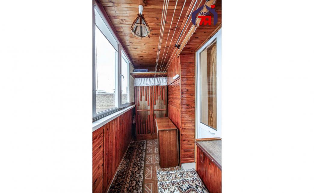 - Из комнаты есть выход на просторную застекленную лоджию. Лоджия обшита вагонкой и покрыта лаком - отличное место для отдыха или работы.