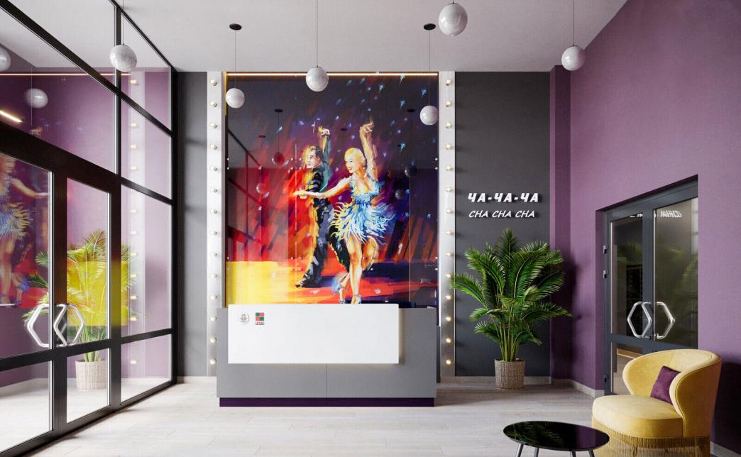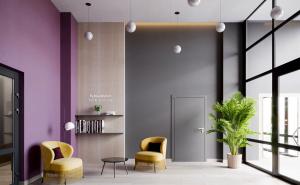 - просторное дизайнерское лобби с зоной отдыха, санитарной комнатой и местом для консьержа.