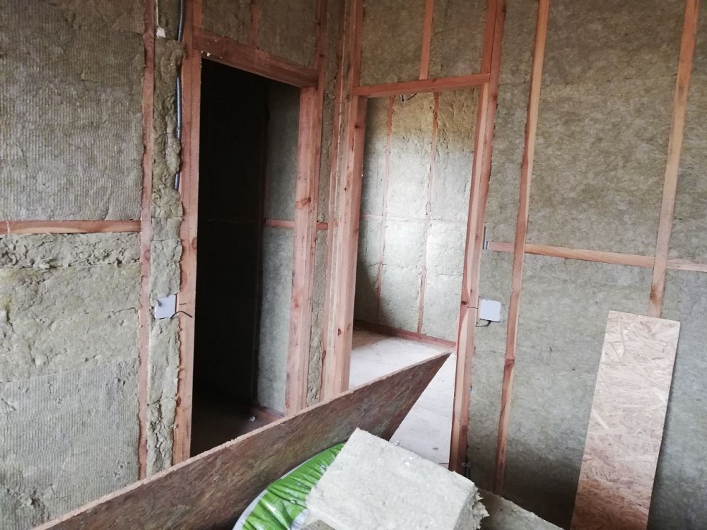 - стены утеплены минеральной базальтовой вата внутри 15 см, снаружи 10 см пенопласта, звукоизоляция межкомнатная 10 см