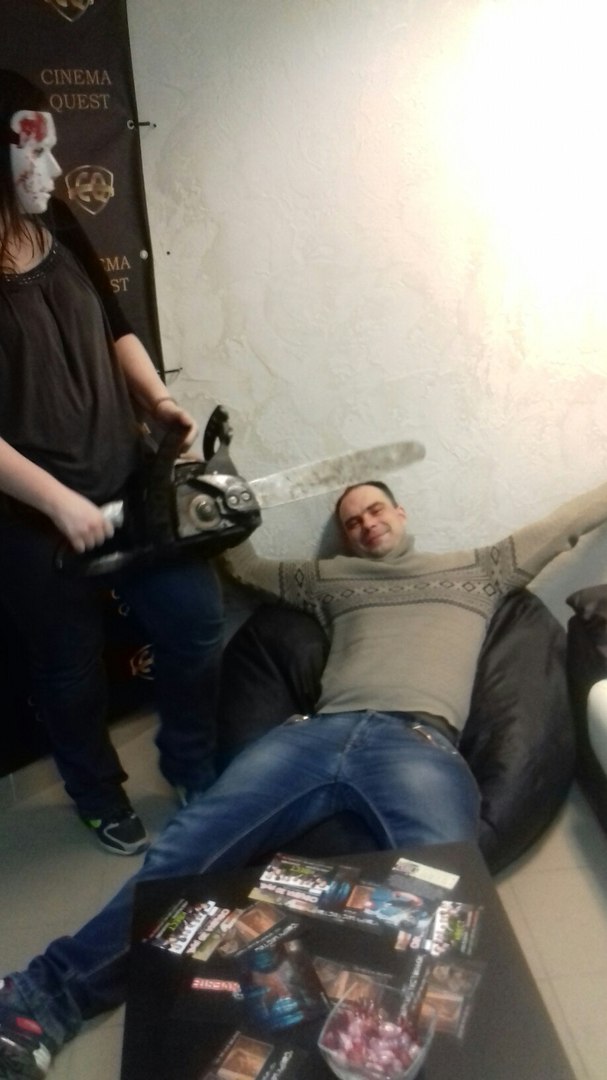 Были на Техасской резне бензопилой , квест понравился, актер был на высшем уровне, только хотелось бы побольше локаций. В общем, спасибо организаторам 😀
