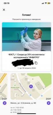 - Промокод дает право на скидку 20% на комплексы* в "ИНВИТРО" в Минске