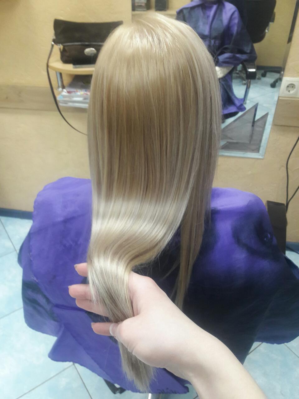 - нанесение термозащиты или сыворотки для волос (на усмотрение мастера)
