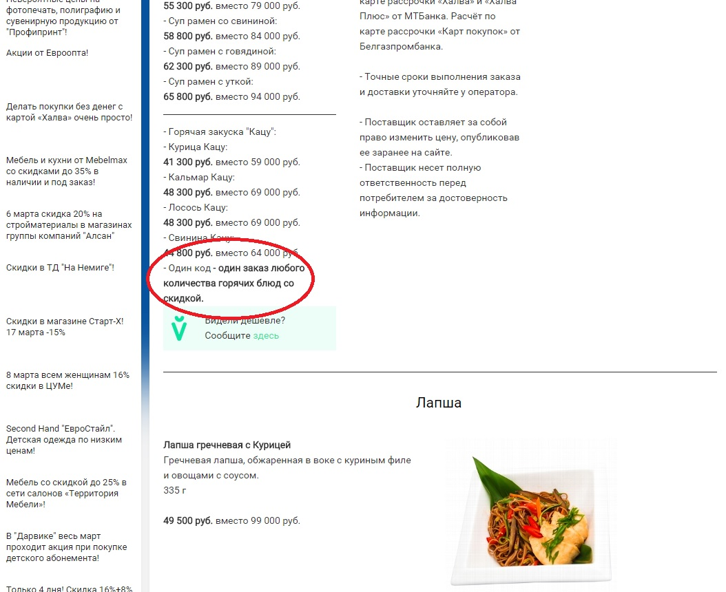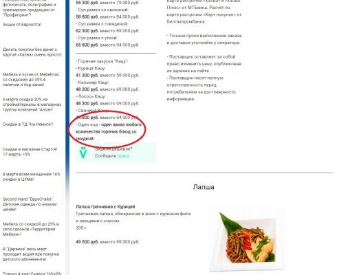 - Один промокод - один заказ любого количества горячих блюд со скидкой.