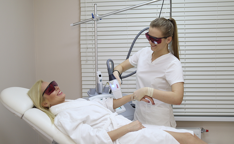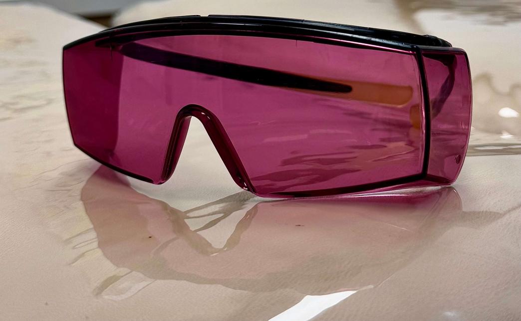 - врач и клиент надевают очки, защищающие глаза от лазерных вспышек