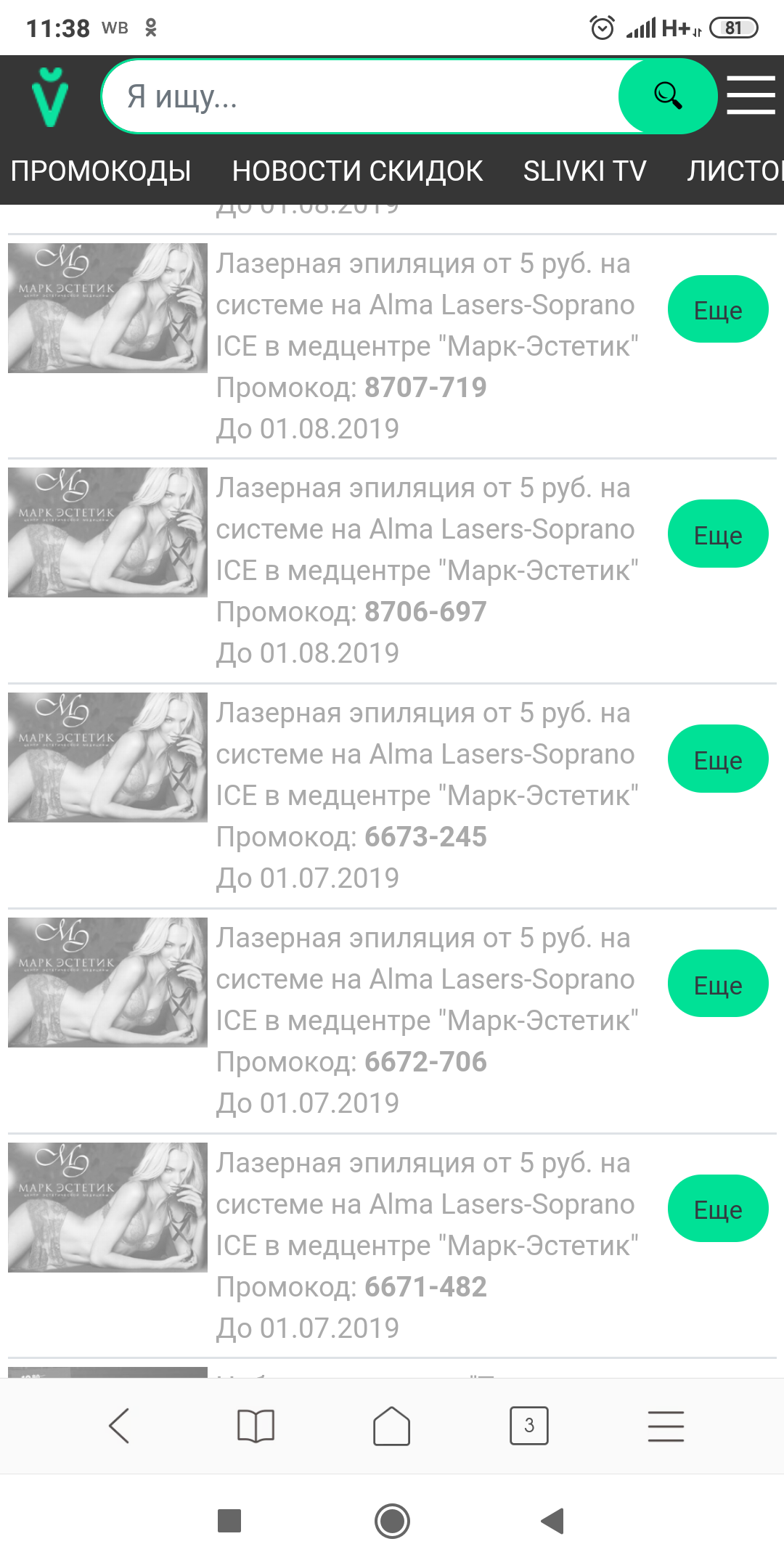 - Промокод дает право на скидку до 81% на лазерную эпиляцию на системе на Alma Lasers-Soprano ICE в медцентре "Марк-Эстетик"