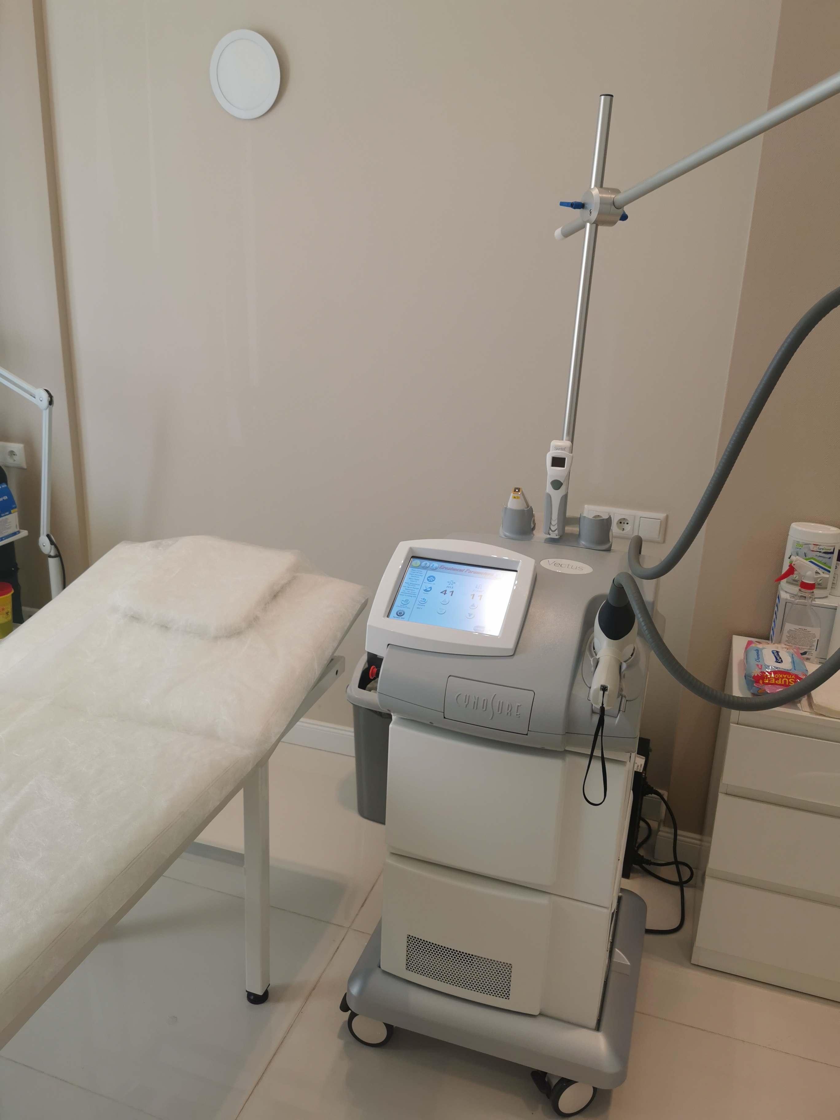 Palomar Vectus™ - принципиально новый, очень быстрый, высокоэффективный диодный лазер с контактным охлаждением кожи пациента сапфировым кристаллом. Palomar Vectus™ отлично зарекомендовал себя при проведении процедур эпиляции. Диодные лазеры прекрасно показали себя в эстетической медицине благодаря высоким результатам лечения. Результативность процедур, огромный ресурс излучателя, высокая скорость лазера, наличие большой и малой оптики с эффективным охлаждением кожи пациента делают данный лазер наиболее востребованным среди большинства конкурирующих систем
