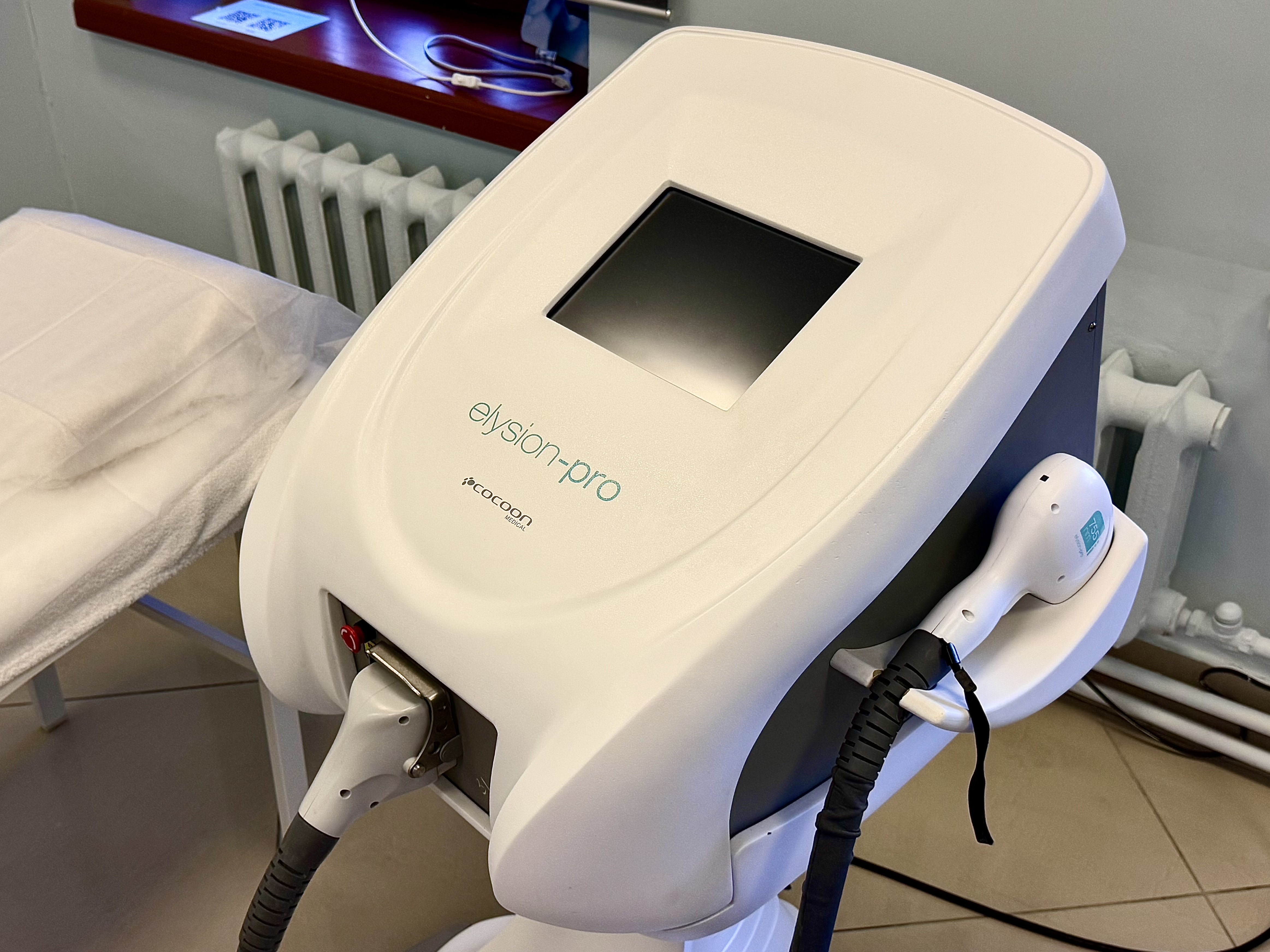 "Elysion Pro" - лазерная система испанской компании "Cocoon Medical", мощный с динамической эпиляцией, то есть в движении, с сапфировым охлаждением. Также позволяет работать на всех фототипах кожи. Основным отличием от "Primelase HR" является возможность работы на тонких и светлых волосках.