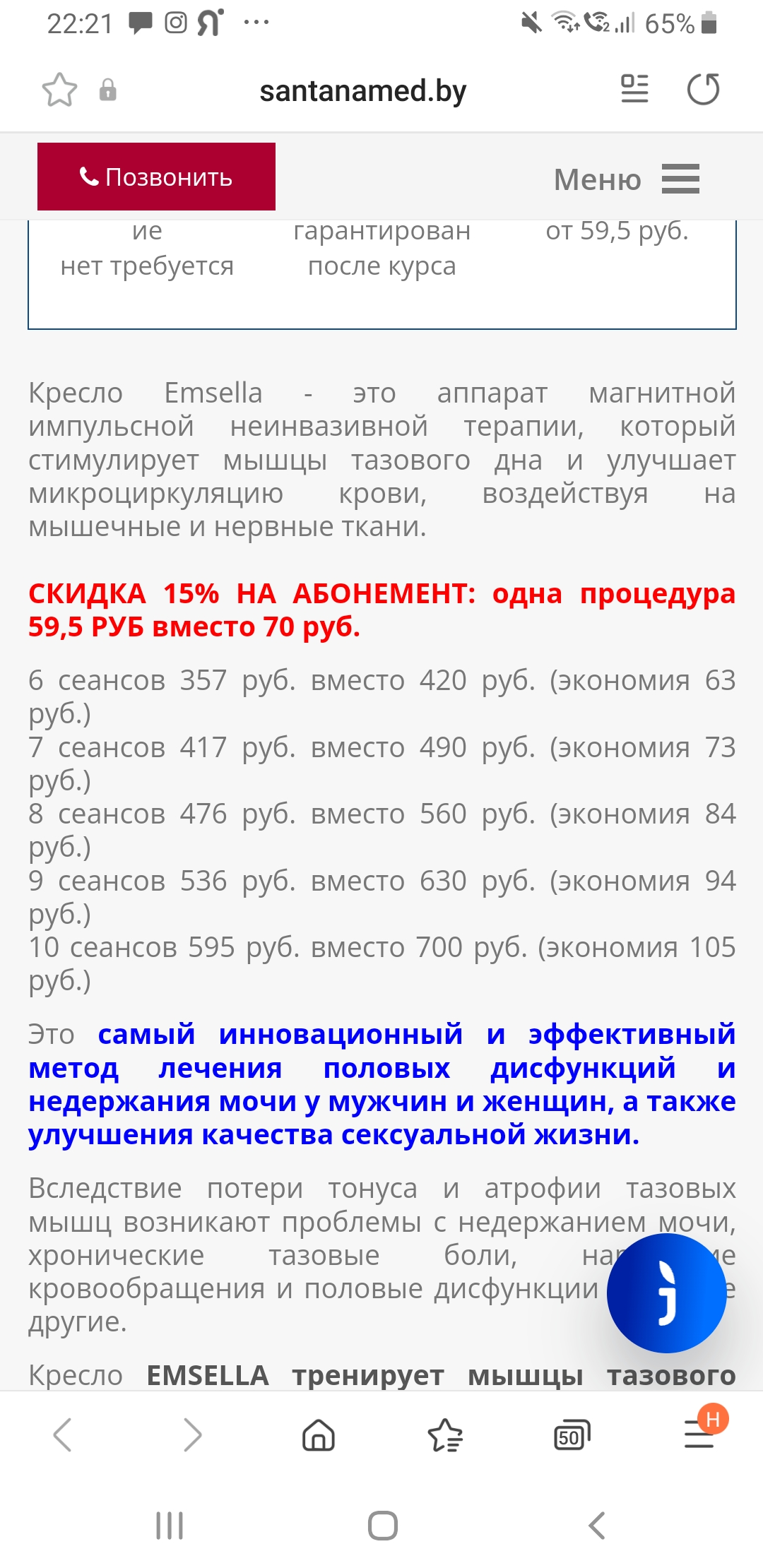 - Лечение и запись на терапию "Emsella" осуществляется только после консультации с врачом