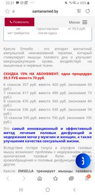 - Промокод дает право на скидку 50% на первую процедуру лечения половых дисфункций, недержания мочи на кресле магнитной стимуляции "BTL Esmella" в медицинском центре "Сантана"
