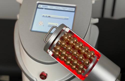 При помощи вакуума формируется складка кожи, захватывающая не только дерму, но и мышцы, и подкожную жировую клетчатку, которая затем активно разминается роликами внутри насадки манипулы. В результате получается тройное воздействие - вакуума, вибрации и вращающихся роликов.