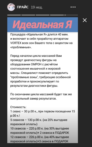 - "Замиксуй" (30 мин, комбинированные программы аппаратного массажа + кавитация):
