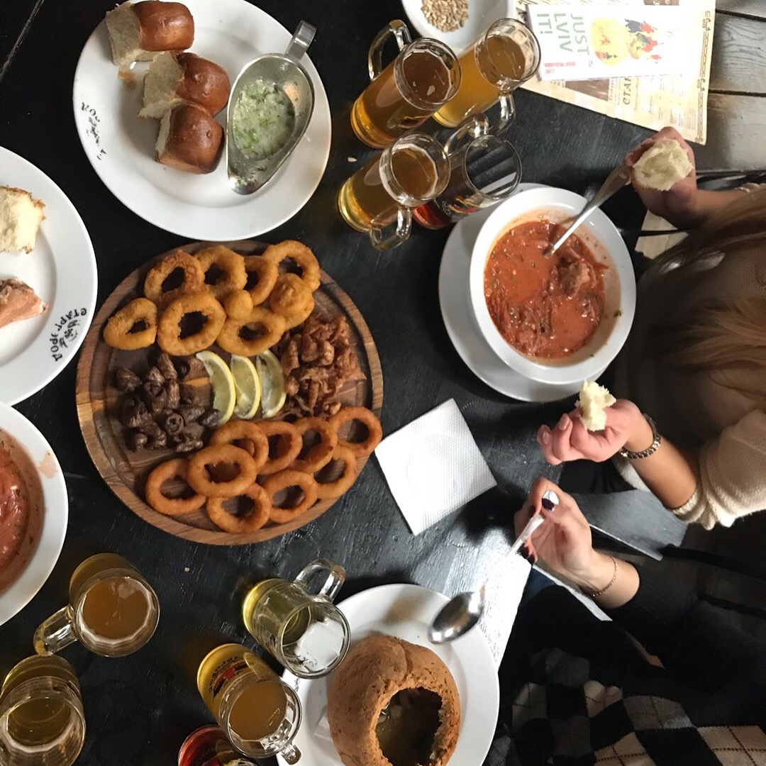 16:00 - дополнительная экскурсия. Гастрономическая экскурсия по самым интересным и знаменитым заведениям Львова, которая включает в себя дегустации. Начинаем нашу экскурсию с чешской пивоварни. Пивовар откроет Вам все секреты пивоварения, мы посетим производство, и попробуем только живой пенный напиток: Лагер, Десятка, Пшеничное и Черное. Следующий пункт - это встреча с паном Малодобрым, именном тем, кто осуществлял все наказания в Средневековом городе! Тут будем пытать свой желудок запахами из лучшего мясного ресторана Украины и байками в исполнении самого Палача. Если он заметит среди Вас должника - клетка с пытками Вам обеспечена! Есть места для туристов, а есть для местных. Местные во Львове пьют травянистые напитки - их 65 видов, и мы начнем с 3-х лучших видов! Если думаете, что на этом наши встречи- приключения окончены, то нет! Мы отойдем на "5 Деко" с главным часовщиком и трубачом, попробуем пользоваться 3-х метровым гуцульским телефоном и услышим невероятные звуки в исполнении местных музыкантов. Дальше мы попадаем в еврейский квартал: в ресторанах надо торговаться, трубочист не чистит трубы, а только наливает, дракон дышит огнем, за поворотом стоит Мазох, и экскурсовод уже рассказывает про невероятного вкуса шоколад - одно мгновение, и Вы в сердце Львова на Площади Рынок! Вы готовы к приключениям, а у гида остались рекомендации для Вашего вечера - хотите в тюрьму, вкусно кушать, танцевать и медовуху - Вам в Крыивку, душа желает изысканности и шика - да Вы – масонское ложе! А как туда попасть и какие пароли надо знать - эта информация только для наших туристов, гиды с удовольствием поделятся с Вами! Внимание! Это не алко-тур, это лучшая экскурсия, которую проводят во Львове! Задача местных гидов - создать настроение на вечер, показать разнообразие вечерней львовской жизни, рассказать только самое интересное, что можно узнать о Львове! И помните, кто не попробовал Львов на вкус, тот там не был! (Длительность 3 часа. Доплата. В стоимость входит: местное крафтовое пиво, настойки и закуски).