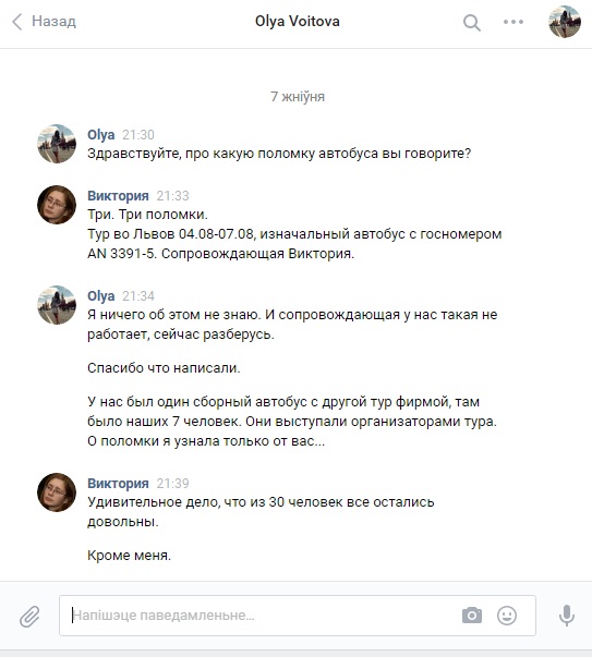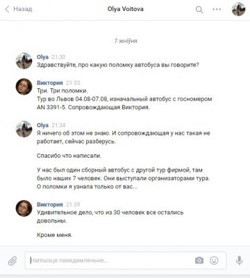 Добрый день. 28.07 2017-30.07 2017 совершали поездку в г. Львов. Экскурсия была просто супер, такие достопримечательности, не описать. Сопровождающий Максим, это действительно тот человек, который помогает и сопериживает всем в дороге. Сервис, удобства, комфортабельность, все на уровне. Действительно турфирма,сопровождающий и город, поспособствовали хорошему настроению и отдыху. Спасибо вам за прекрасные моменты.