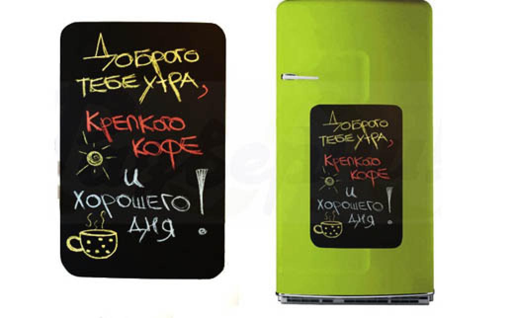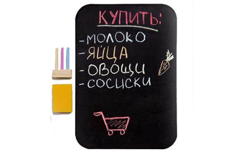 Обожаете писать друг другу записки про "Кашу в холодильнике" и напоминать о важных мелочах? Дети рисуют свои первые произведения где попало и хотят дома "доску как в школе"? У нас есть кое-что очень интересное и необычайно полезное для вас - это грифельная магнитная доска на холодильник. Доска нам нравится потому, что: - она не приклеивается, а примагничивается и ее можно легко снять - По ней можно писать и рисовать разноцветными мелками точно как и по школьной доске. - Стирается всё художество обычной влажной губкой, которая входит в комплект - Универсальна как подарок для всех возрастов - В наборе: магнитная доска, 3 разноцветных мелка, деревянный держатель для мела на магнитике, губка-мочалка. - Всё упаковано в яркий картонный тубус. Размер доски: прямоугольник с закругленными краями - 450 х 600 мм или 450 х 300 мм Материал: магнитная грифельная доска