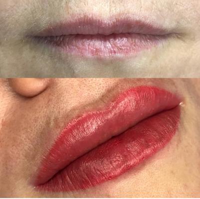 Полное заполнение –  этот способ татуажа губ рекомендуется тем клиентам, кто хочет полностью изменить свои губы. Он наиболее эффективен для коррекции их формы и цвета, а также даст возможность визуально увеличить губы и исправить имеющуюся асимметрию.