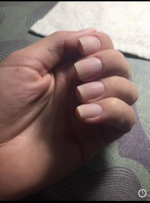 Так выглядят ногти после "бережного" снятия долговременного покрытия. Теперь необходимо около полу года, что бы восстановить  ногтевую пластину. Впервые сталкиваюсь с такими глубокими пропилами. Испорченные ногти, настроение и полное разочарования. Не рекомендую.