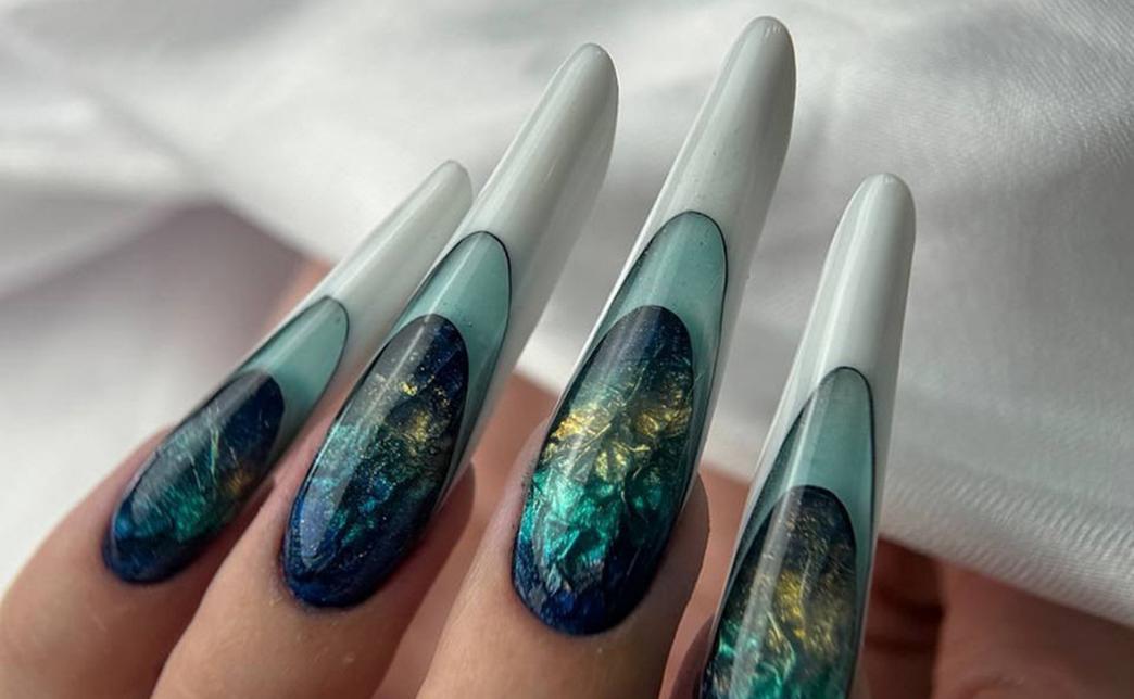 Арочные ногти средней и большой длины позволяют выполнять композиции, поражающие своей глубиной и красотой. При этом они выглядят тонко и изящно. Носятся обычное для гелевых ногтей время.