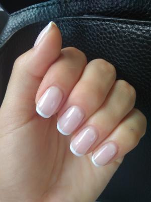 - маникюр + долговременное покрытие френч с камуфляжем: