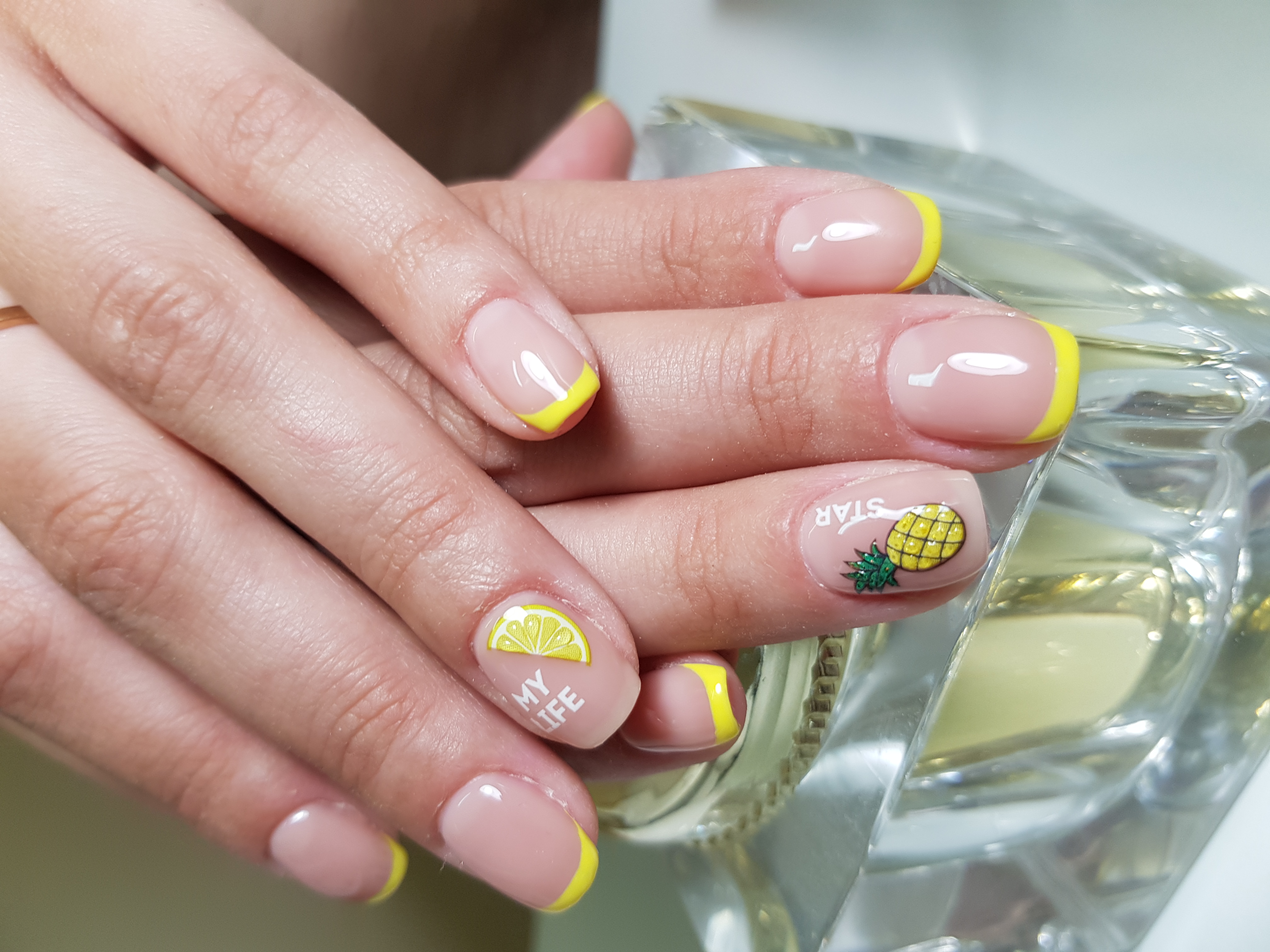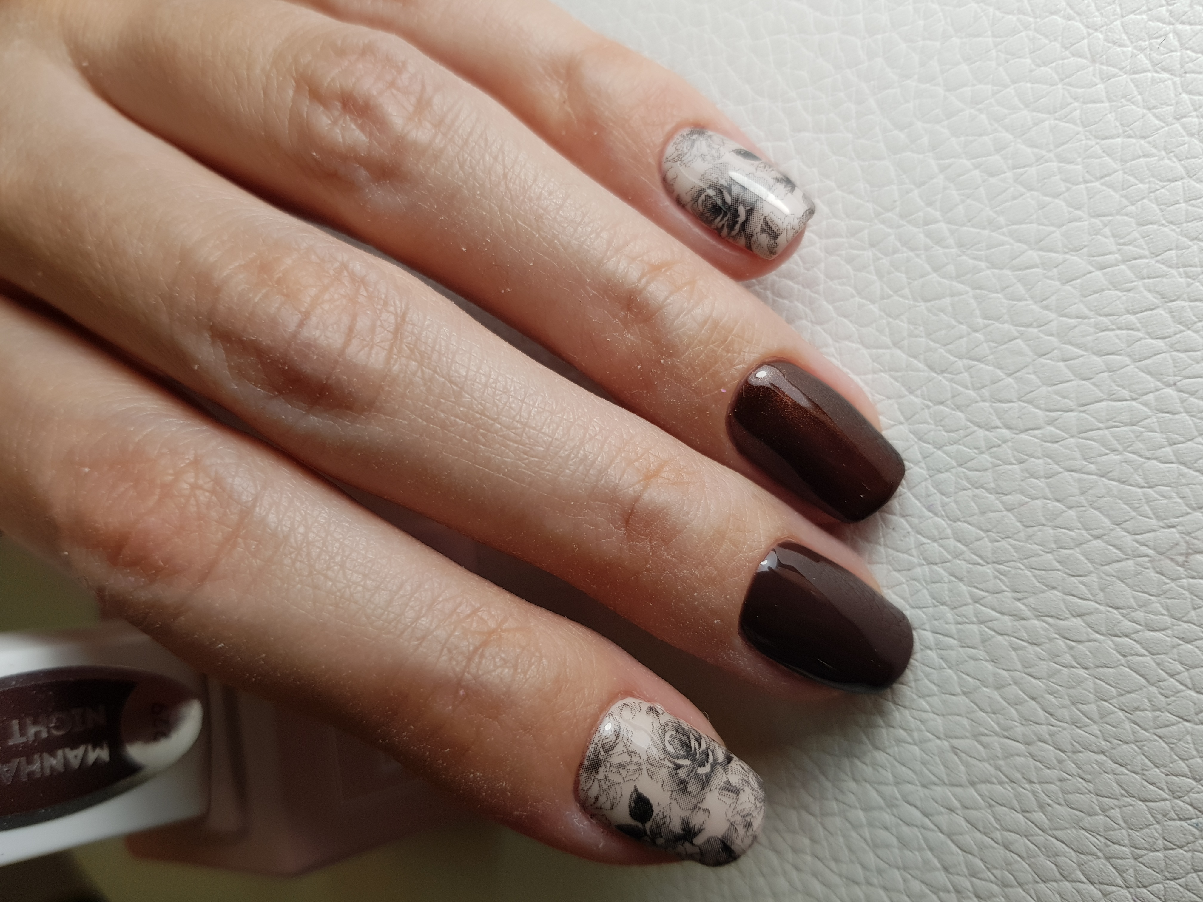 Комбинированный маникюр,  покрытие гель лаком E.mi,  дизайн