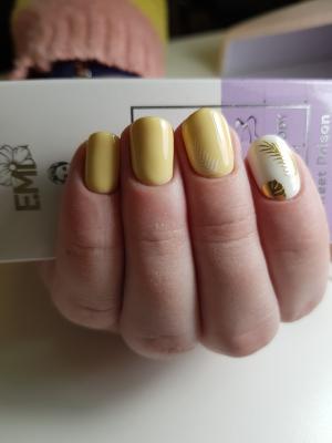 работа мастера Ольги , маникюр комбинированный,  укрепление ногтей,  покрытие гель лаком E.mi