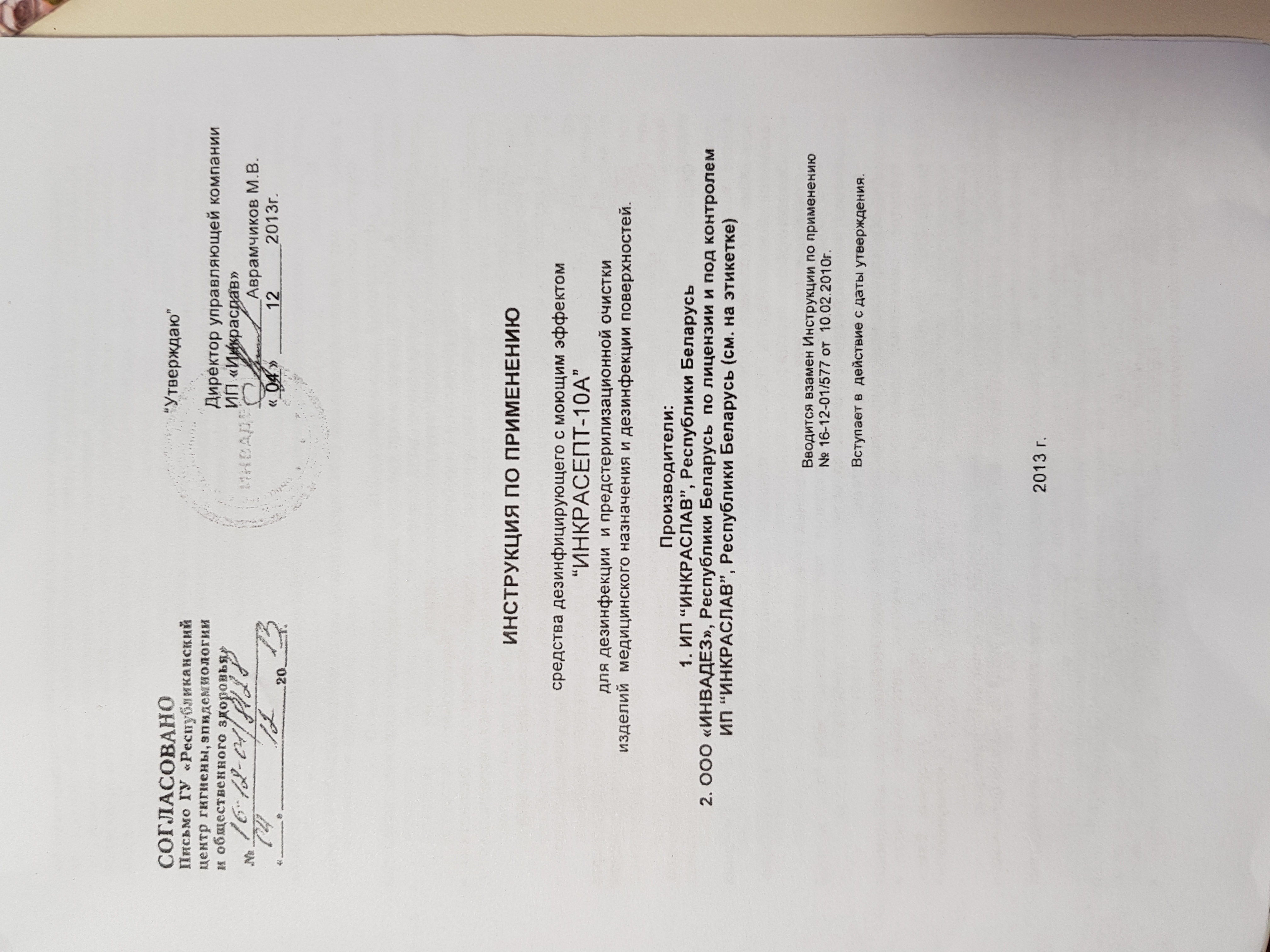 Здравствуйте мы используем для дезинфекции инструмента Инккрасепт-10а в ультразвуковой мойке, потом инструмент хранится в УФ- шкафу