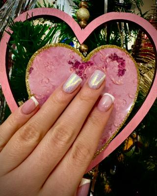 - наращивание ногтей + долговременное покрытие френч: