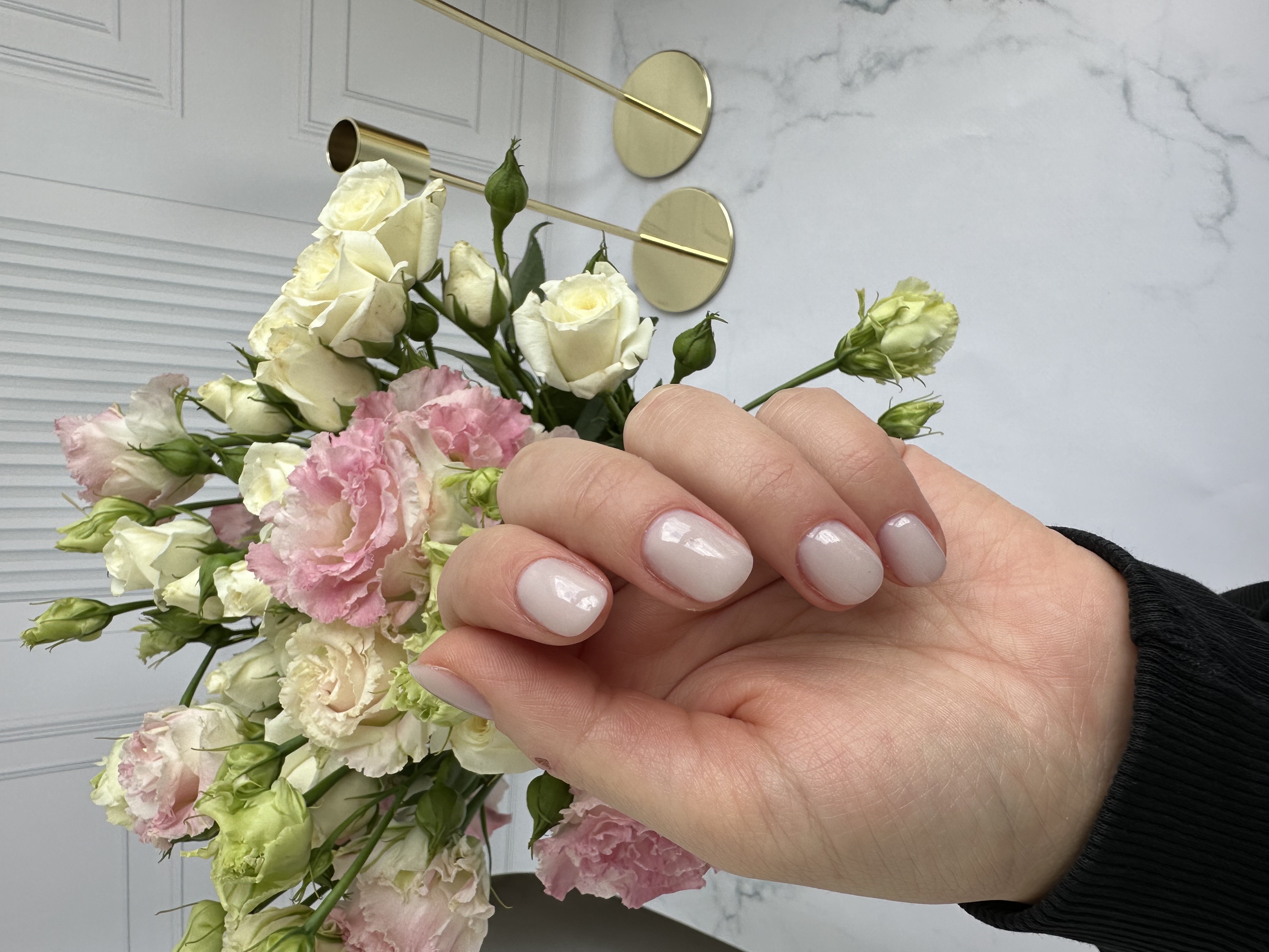 - наращивание ногтей + долговременное однотонное покрытие: