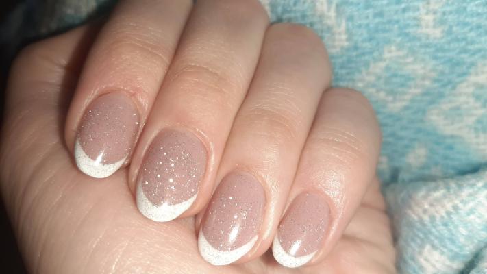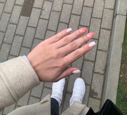 - наращивание ногтей + долговременное покрытие френч: