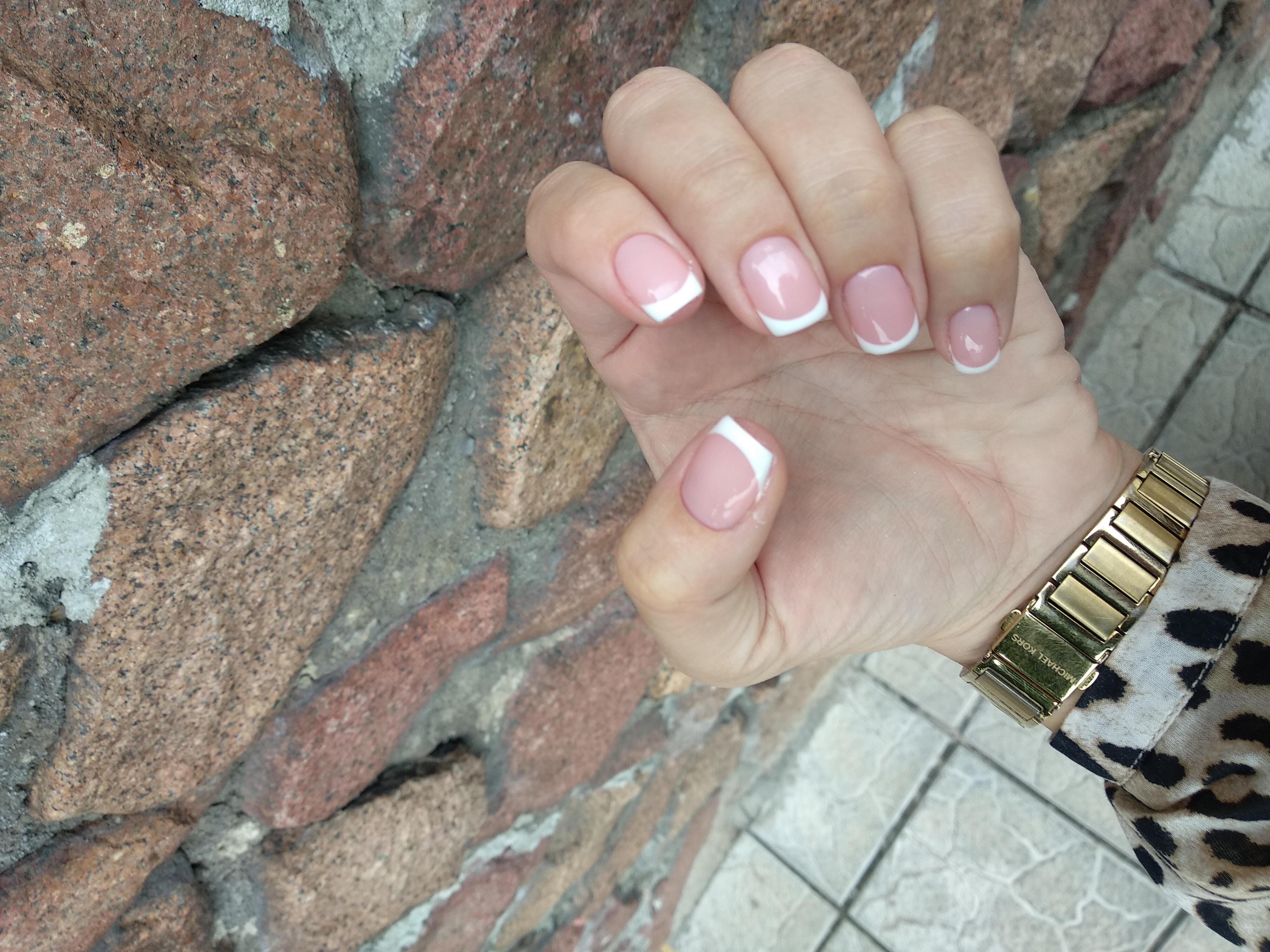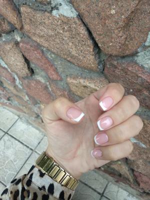 - наращивание ногтей + долговременное покрытие френч: