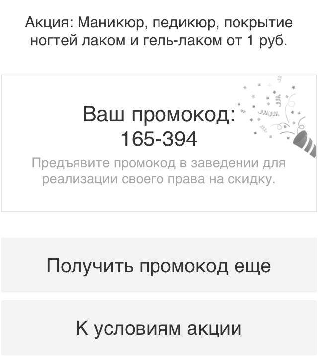- Промокод дает право на скидку до 50% на маникюр и педикюр, покрытие лаком в ​студии красоты "Лаки Ликс"