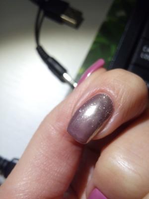 Втирку тоже абы как сделали, потому что вместо металлического блеска, у меня просто  шиммерный лак, потому что излишки блесток мне просто размазали по всему ногтю. так-что металлическим зеркальным блеском тут и не пахнет (на фото видно)