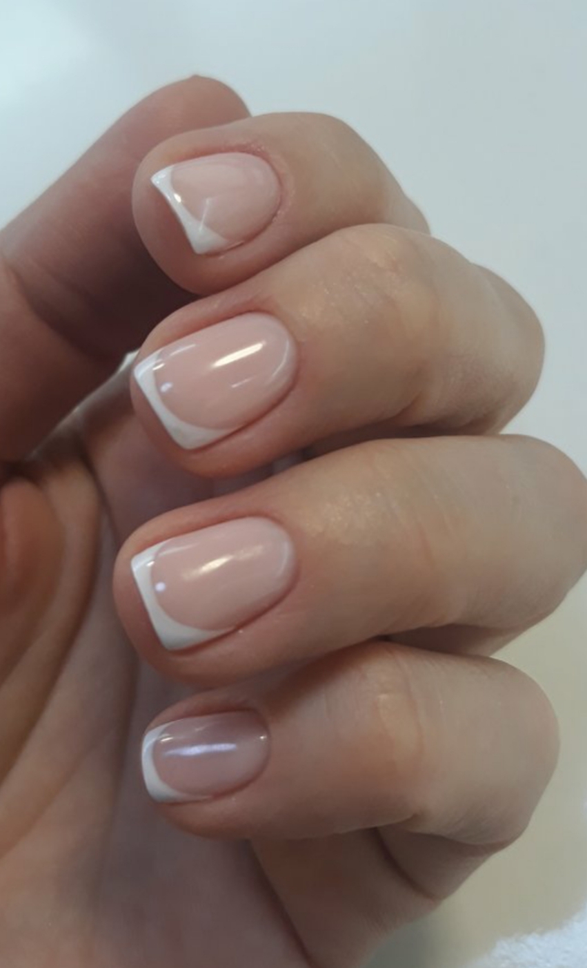 - наращивание ногтей + долговременное покрытие френч: