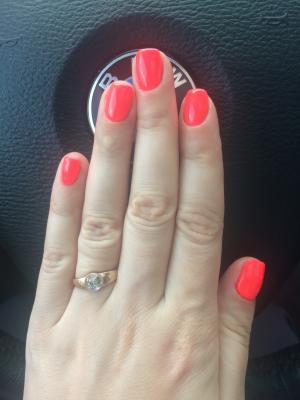 Очень понравился маникюр, сделанный Екатериной! Держится как никогда долго - пошла 4-я неделя, ни единого скола - это какая-то фантастика!