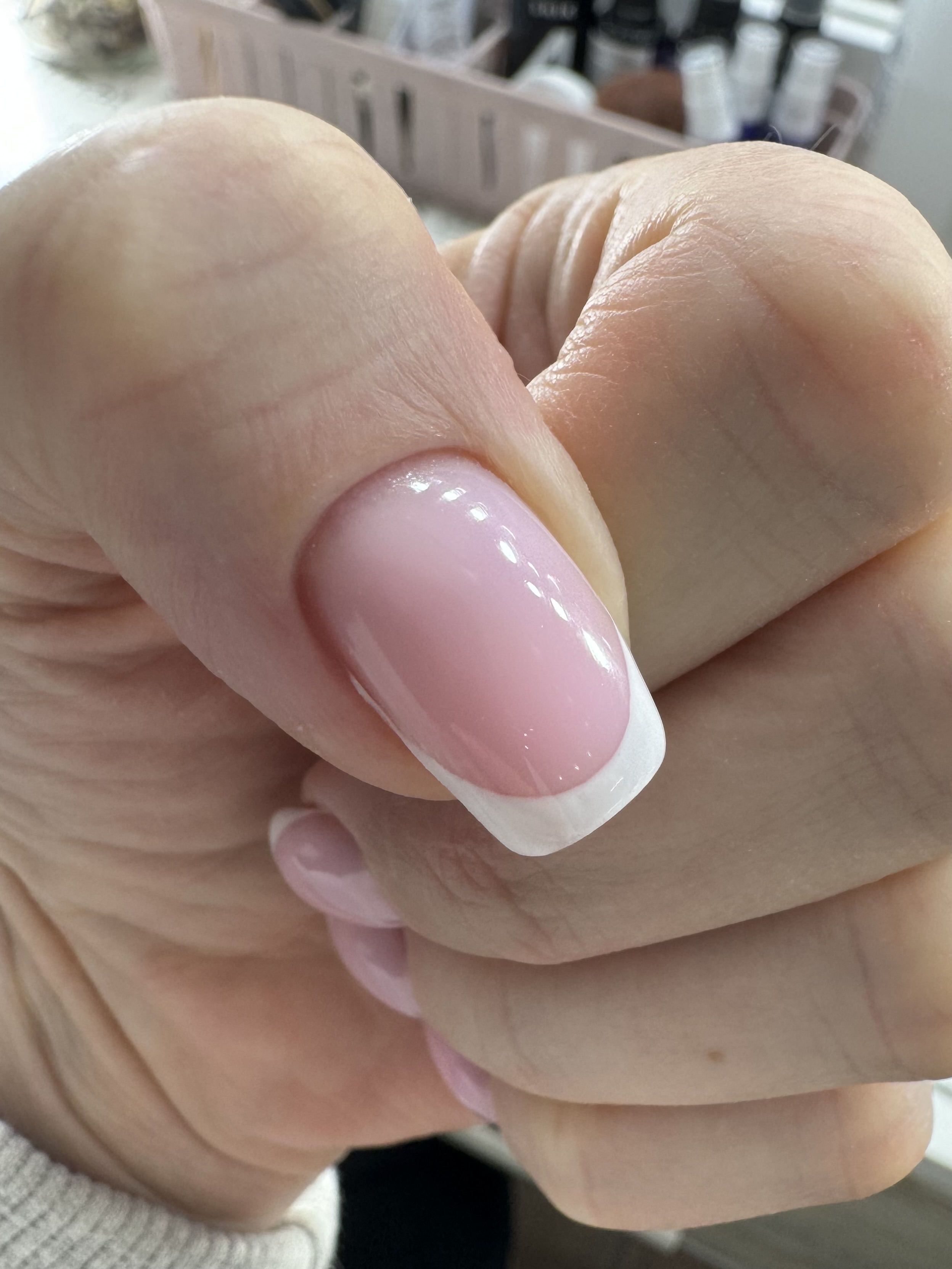 Описание процедуры: снятие старого долговременное покрытия фрезой, придание формы ногтям, гигиеническая обработка кутикулы и боковых валиков аппаратным способом с использованием абразивных стерильных фрез, или комбинированным способом (фрезы + ножнички/кусачки), однотонное покрытие ногтей гель-лаком, масло для кутикулы, массаж кистей с кремом для рук