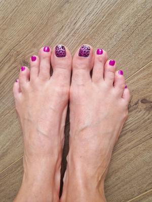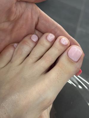 - обработка ногтей пальцев ног: придание формы ногтям, гигиеническая обработка кутикулы и боковых валиков аппаратным способом с использованием абразивных стерильных фрез, или комбинированным способом (фрезы + ножнички/кусачки), масло для кутикулы