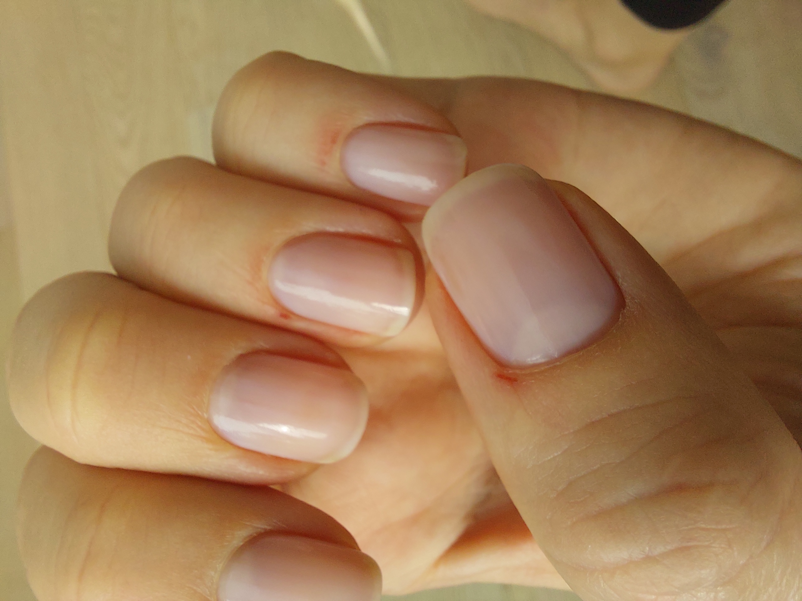 - снятие старого покрытия фрезой, придание формы ногтям, гигиеническая обработка кутикулы и боковых валиков аппаратным способом с использованием абразивных стерильных фрез, или комбинированным способом (фрезы + ножнички/кусачки), однотонное покрытие ногтей гель-лаком, масло для кутикулы