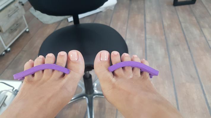 - обработка ногтей пальцев ног: придание формы ногтям, гигиеническая обработка кутикулы и боковых валиков аппаратным способом с использованием абразивных стерильных фрез, или комбинированным способом (фрезы + ножнички/кусачки), масло для кутикулы