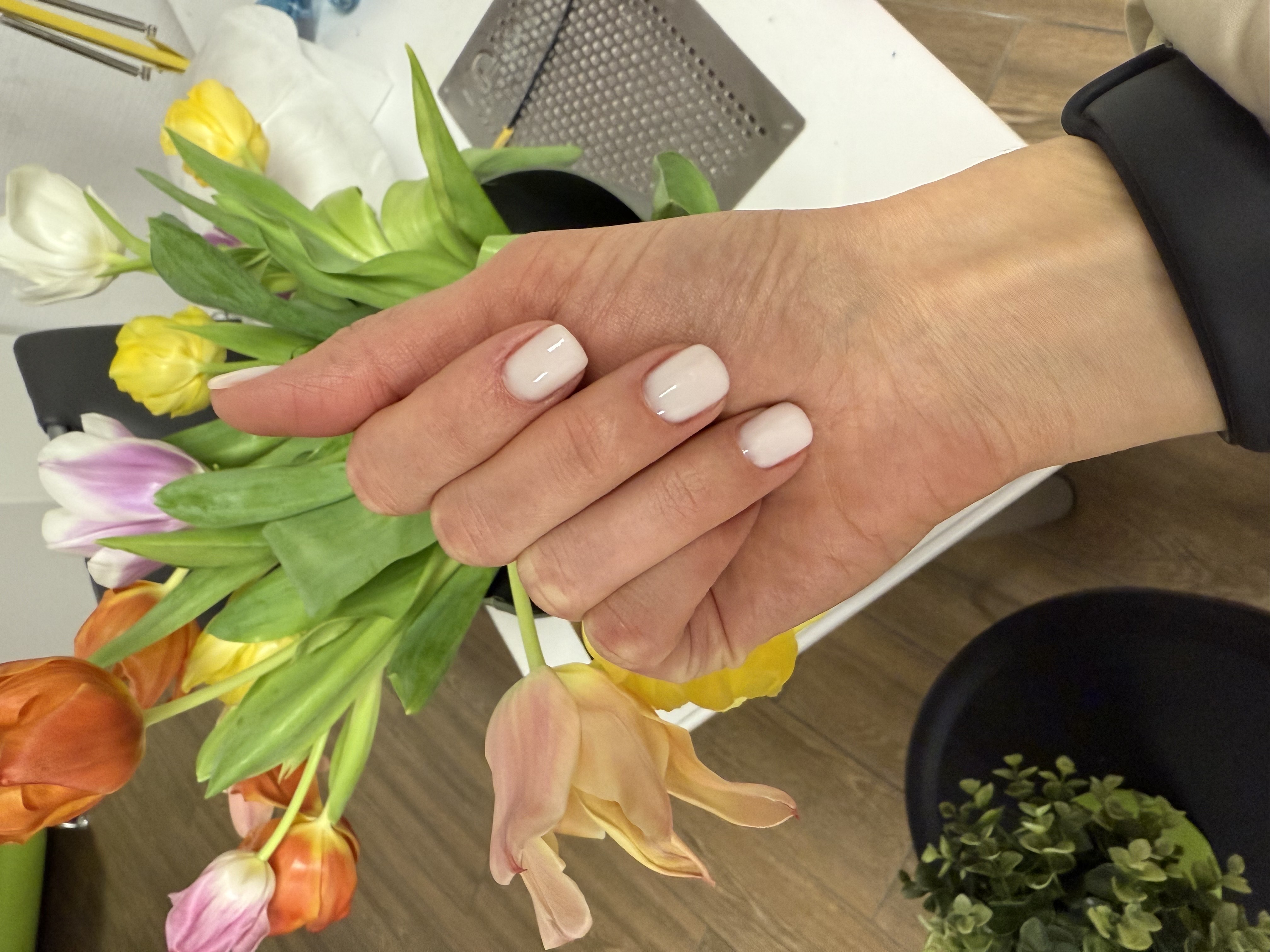 - маникюр (комбинированный/аппаратный) + снятие + долговременное однотонное покрытие + выравнивание ногтевой пластины: 45 р. 65 р.