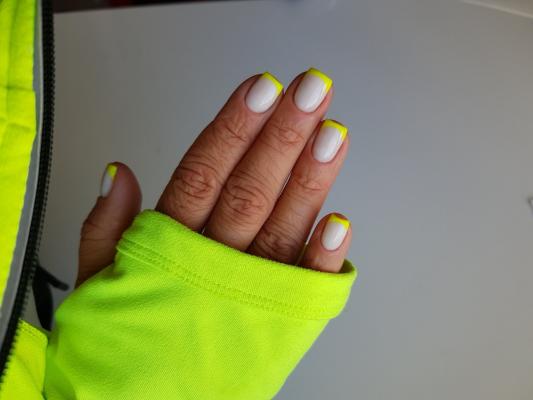 Постоянно хожу на маникюр и педикюр в Foxy к мастеру Дарье. Ручки золотые! Всегда подскажет, чем красить, что в тренде, что бы стильно и с настроением. Обработку делаю только аппаратную - работа безупречная, отлично носится до месяца. В этот раз мы разбавили карантинное настроение  кислотой  )))