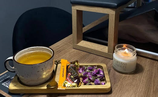 - вкусный кофе и чай, а в выходные и праздничные дни бокал игристого!