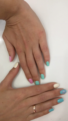- Покрытие выполняется стойким гель-лаком, который не скалывается в течение 2-3 недель