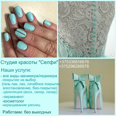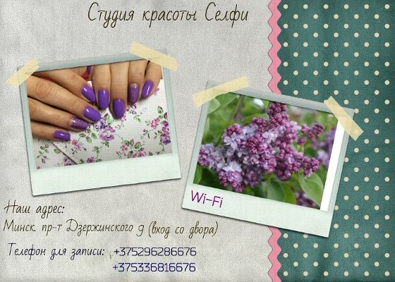 У нас новая линейка гель лаков. Новые оттенки, новые дизайны!!! Спешите записаться в студию Селфи! Мы постараемся выполнить любой сложности Ваш дизайн! угостим ВАс Очень вкусным кофе: капучинко, экспрессо!