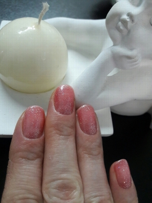 Нежный цвет с блестками в выигрыше,когда с покрытием нужно ходить больше 2-3 недель))))на фото ручки нашей постоянной клиентки ,спасибо ей за фото)))))