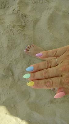 Съездила на море на две недели и приехала с тем же маникюром-педикюром, ни одного скола. Очень удивлена результатом, так как весь отпуск копалась с ребенком в песке и ракушках и ничего не слезло, только ногти отрасли. Жду новых акций и снова приду к вам)))