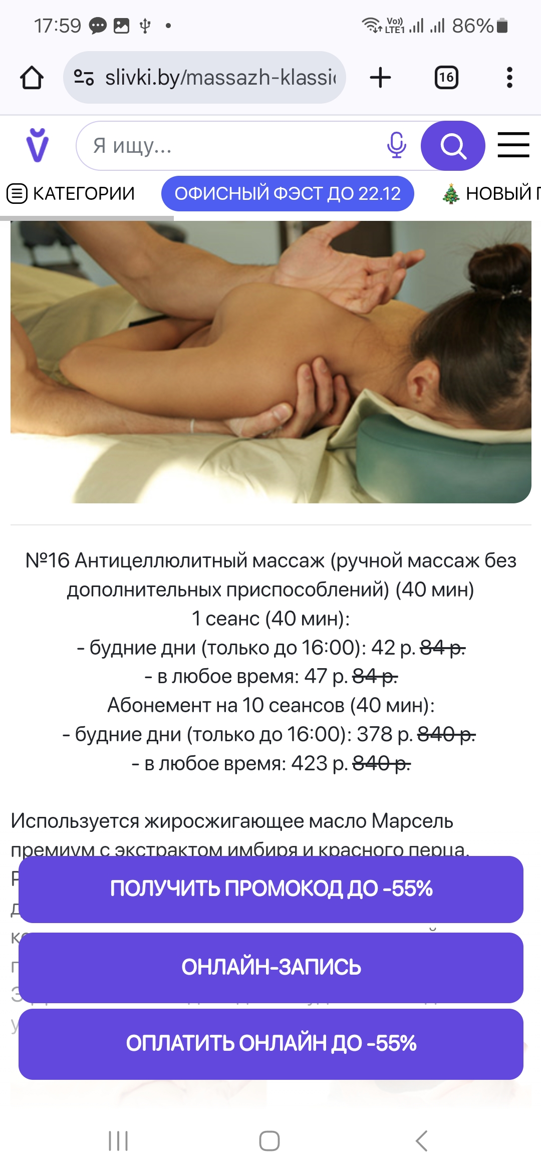 - Промокод дает право на скидку до 55% на различные виды массажа