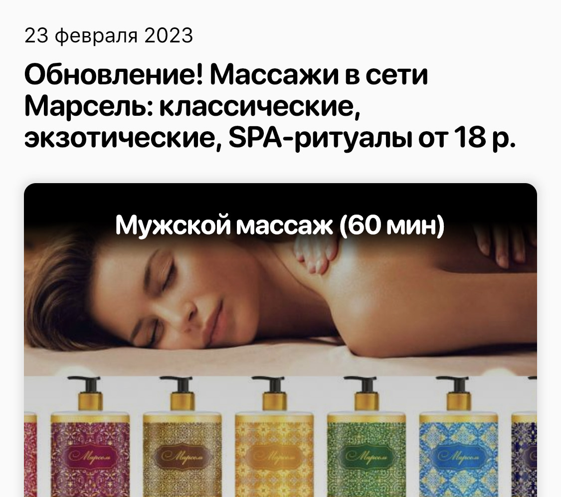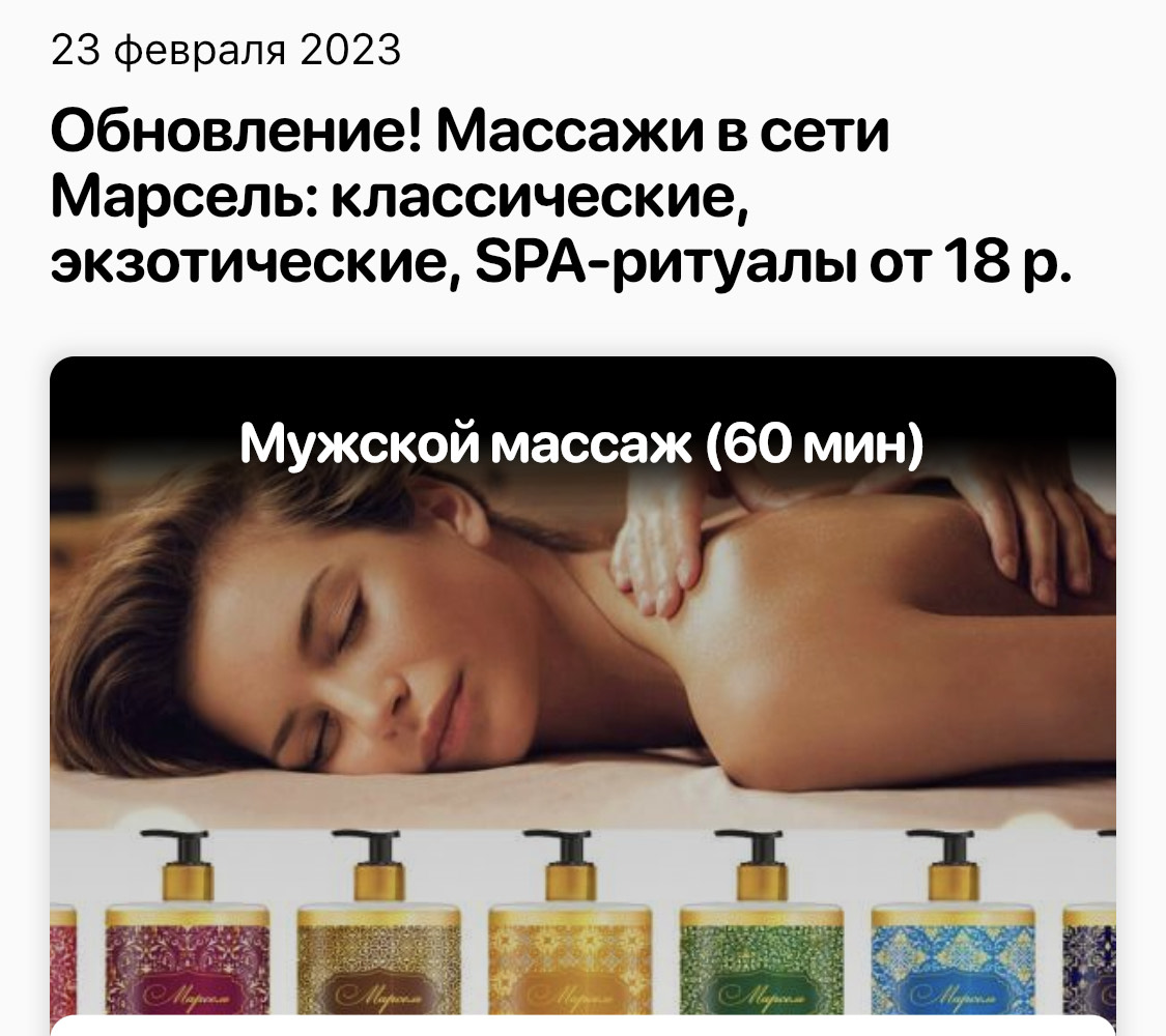 - Промокод дает право на скидку до 55% на различные виды массажа