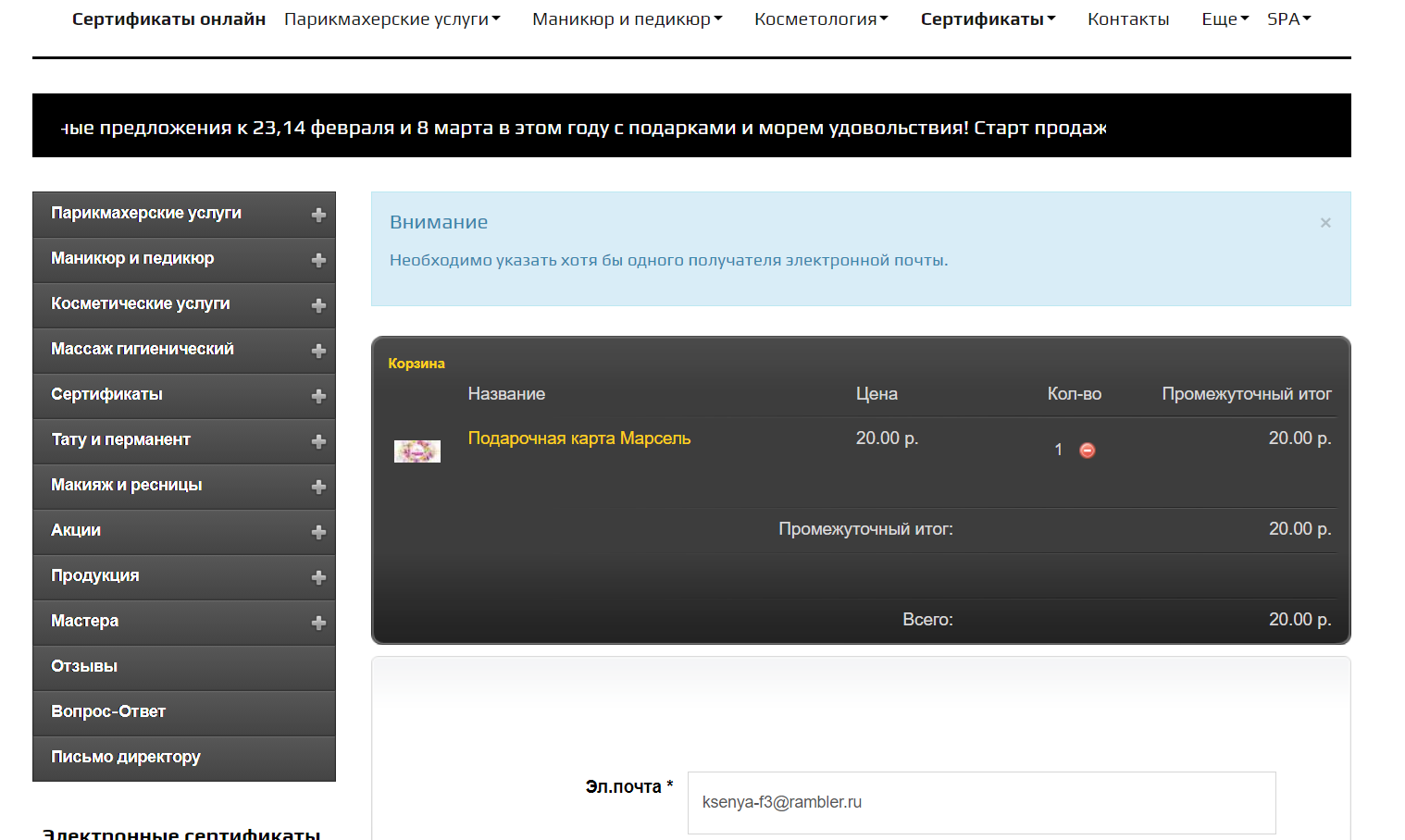 - Подробные правила использования электронных подарочных сертификатов смотрите здесь